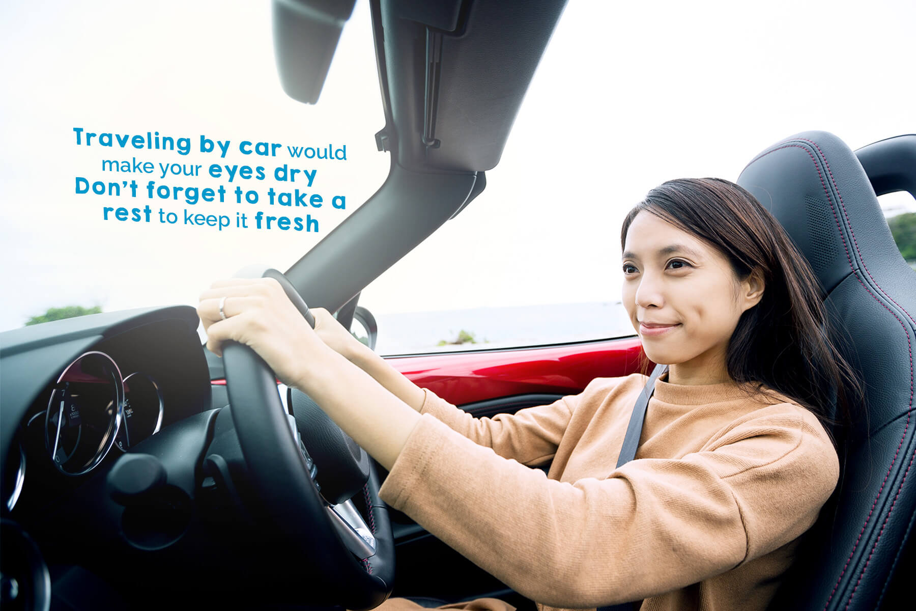 Traveling by car would make your eyes dry Don't forget to take a rest to keep it fresh